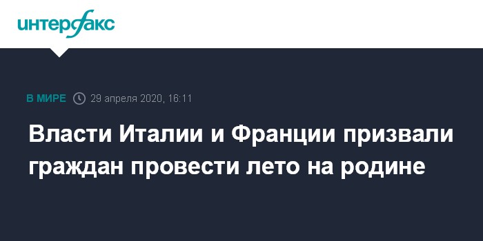 Москва. 29 апреля. INTERFAX.RU - Итальянский министр культуры и туризма Дарио Франческини призвал итальянцев провести летний отдых на территории страны. С таким же призывом выступили и французские власти.