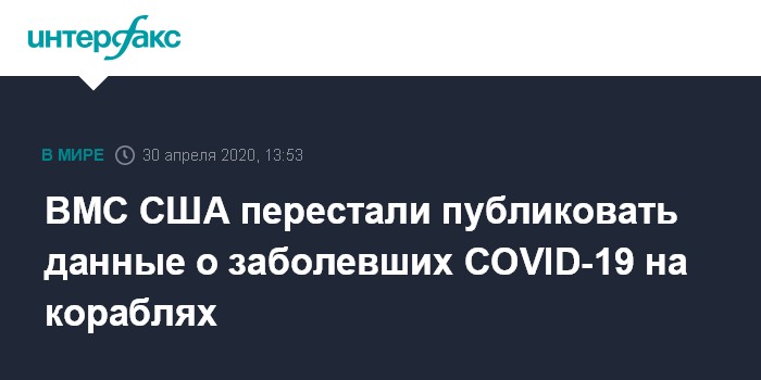Москва. 30 апреля. INTERFAX.RU - Командование ВМС США больше не будет публиковать официальную информацию о количестве случаев коронавируса на американских боевых кораблях, сообщает CNN.