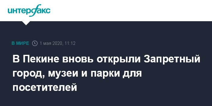 Москва. 1 мая. INTERFAX.RU - Запретный город - одну из главных достопримечательностей Пекина - вновь открыли для туристов после того, как в конце января музейный комплекс приостановил работу из-за угрозы коронавируса, сообщает в пятницу агентство Associated Press.