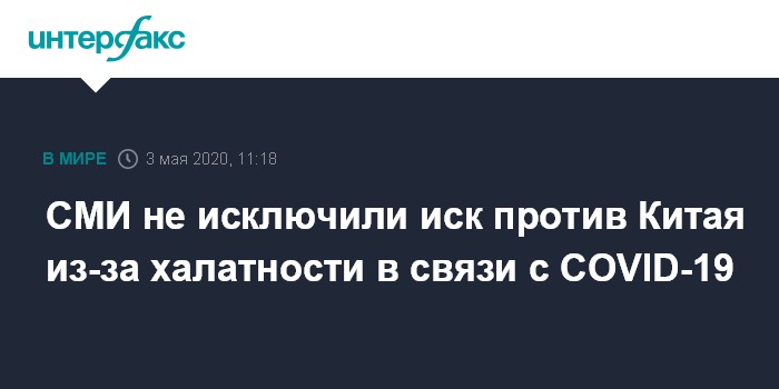 СМИ не исключили иск против Китая из-за халатности в связи с COVID-19