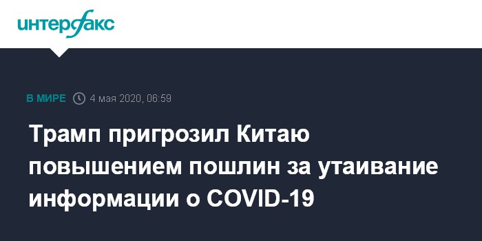 Трамп пригрозил Китаю повышением пошлин за утаивание информации о COVID-19