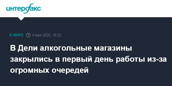 Москва. 4 мая. INTERFAX.RU - В Дели пришлось снова закрыть некоторые алкогольные магазины спустя всего несколько часов после того, как они возобновили работу впервые с 24 марта. Причиной тому стали большие очереди, сообщает в понедельник BBC News.