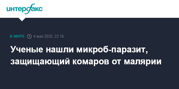 Москва. 4 мая. INTERFAX.RU - Группа ученых из Кении и Великобритании обнаружила в кишечнике и половых органах у 5% комаров микроорганизм Microsporidia MB, который препятствует заражению насекомых малярией, сообщает "Би-би-си".