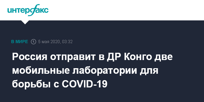 Россия отправит в ДР Конго две мобильные лаборатории для борьбы с COVID-19
