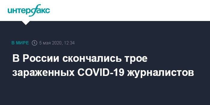 Как он рассказал "Интерфаксу" во вторник, в РФ умерли трое журналистов, и более 100 заболели новой коронавирусной инфекцией.