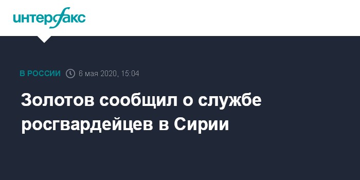 Москва. 6 мая. INTERFAX.RU - В Сирии присутствует ограниченный контингент войск Росгвардии, бойцы выполняют задачи без срывов, сообщил директор Росгвардии Виктор Золотов президенту Владимиру Путину.