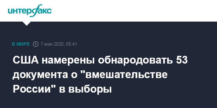 Москва. 7 мая. INTERFAX.RU - Исполняющий обязанности директора Национальной разведки США Ричард Гренелл заявил, что 53 стенограммы, якобы свидетельствующие о вмешательстве России в президентские выборы в США в 2016 году, могут быть преданы гласности, сообщают американские СМИ.
