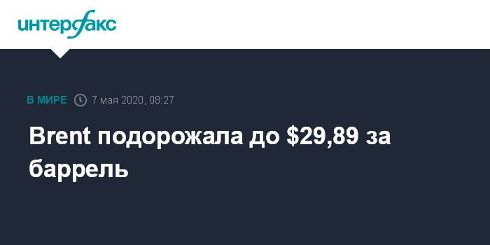 К 8:02 по московскому времени июльские фьючерсы на Brent дорожали на лондонской бирже ICE Futures на $0,17 (0,57%), до $29,89 за баррель. В среду Brent подешевела на $1,25 (4%), до $29,72 за баррель.