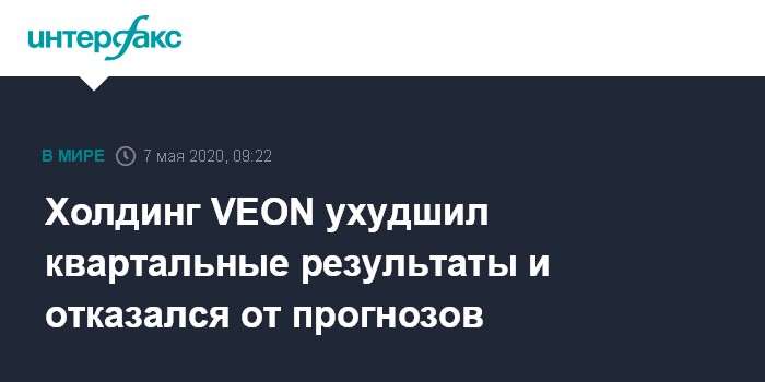 В квартальном отчете VEON сообщил, что приостанавливает прогноз финансовых результатов на 2020 год из-за неопределенности с последствиями пандемии коронавируса. Ранее холдинг сообщал, что ожидает по итогам 2020 года органический рост выручки на уровне 1-3% (в 2019 году органический рост показателя составил 3,4%, фактическая выручка снизилась на 2,5% - до $8,86 млрд.) и увеличения органической EBITDA в диапазоне 4-6%.