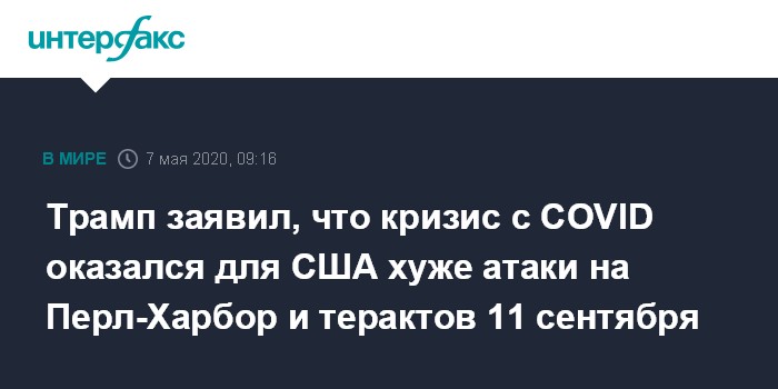 Трамп заявил, что кризис с COVID оказался для США хуже атаки на Перл-Харбор и терактов 11 сентября