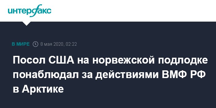 Москва. 8 мая. INTERFAX.RU - Посол США в Норвегии Кеннет Брейтуэйт, номинируемый на пост министра ВМС США, заявил комитету Сената по вооруженным силам, что лично наблюдал за российскими подлодками в ходе учений норвежских ВМС.