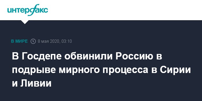 В Госдепе обвинили Россию в подрыве мирного процесса в Сирии и Ливии