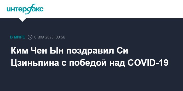 Москва. 8 мая. INTERFAX.RU - Северокорейский лидер Ким Чен Ын направил устное послание председателю КНР Си Цзиньпину, поздравив Китай с успехами в предотвращении распространения коронавируса COVID-19, сообщает ЦТАК.