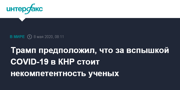 Трамп предположил, что за вспышкой COVID-19 в КНР стоит некомпетентность ученых
