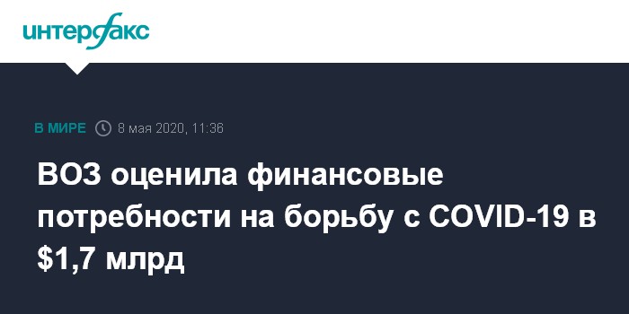 ВОЗ оценила финансовые потребности на борьбу с COVID-19 в $1,7 млрд