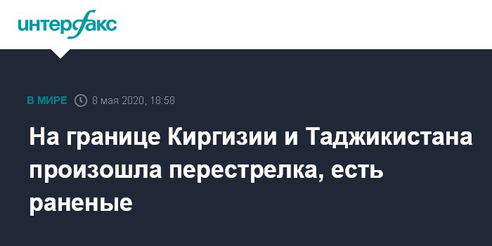 Москва. 8 мая. INTERFAX.RU - Погранслужбы Таджикистана и Киргизии сообщили о перестрелке на границе и о пострадавших с обеих сторон. Стороны обвиняют друг друга в начале конфликта.