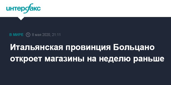 Итальянская провинция Больцано откроет магазины на неделю раньше