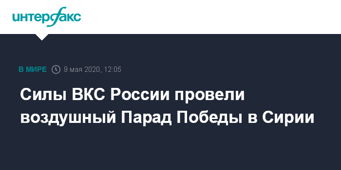 Москва. 9 мая. INTERFAX.RU - Летчики российских Воздушно-космических сил России провели в День Победы авиапарад над авиабазой Хмеймим в Сирии.