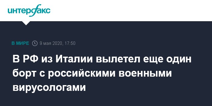 В РФ из Италии вылетел еще один борт с российскими военными вирусологами