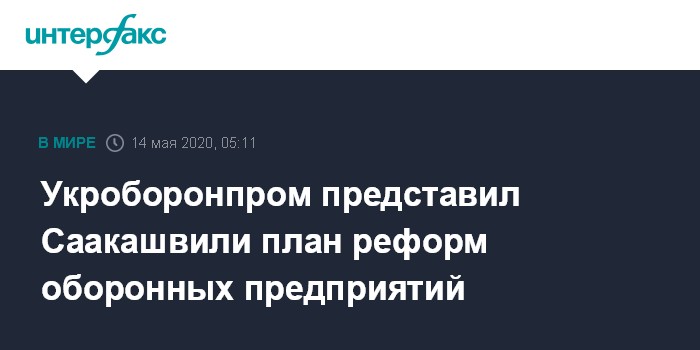 Москва. 14 мая. INTERFAX.RU - Руководство государственного концерна "Укроборонпром" представило планы реформы оборонных предприятий концерна председателю Исполнительного комитета Национального совета реформы при президенте Украины Михаилу Саакашвили, сообщила пресс-служба "Укроборонпрома".