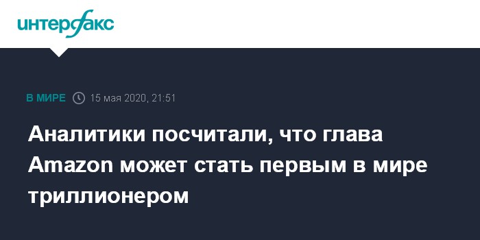 Москва. 15 мая. INTERFAX.RU - Состояние основателя и главного исполнительного директора Amazon.com Джеффа Безоса может превысить $1 трлн в 2026 году, согласно расчетам консалтинговой фирмы Comparisun.