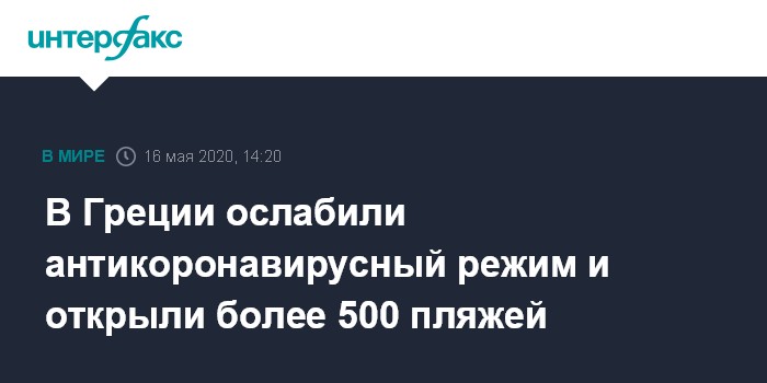 Москва. 16 мая. INTERFAX.RU - Более 500 пляжей открылись в Греции в субботу в рамках ослабления жестких мер по сдерживанию эпидемии COVID-19 и в условиях небывало жаркой погоды, сообщает интернет-портал греческого издания "Катимерини".