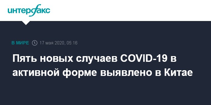 Пять новых случаев COVID-19 в активной форме выявлено в Китае