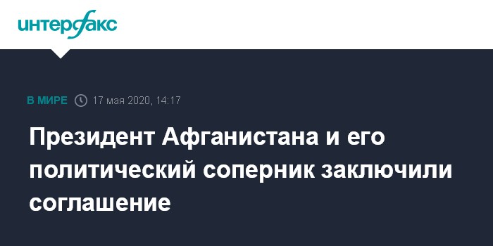 Москва. 17 мая. INTERFAX.RU - Президент Афганистана Ашраф Гани и его главный политический оппонент Абдулла Абдулла подписали в воскресенье политическое соглашение.