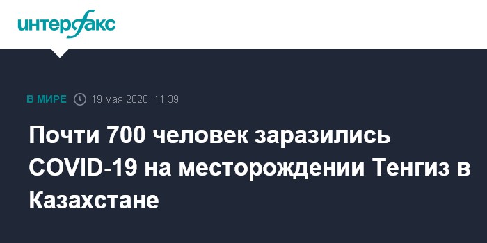Москва. 19 мая. INTERFAX.RU - В Атырауской области Казахстана на месторождении Тенгиз коронавирус выявлен у еще 142 человек, общее число заболевших COVID-19 достигло 689 человек, сообщил во вторник региональный оперативный штаб.