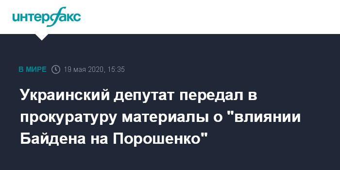 Украинский депутат передал в прокуратуру материалы о "влиянии Байдена на Порошенко"