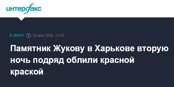 Москва. 20 мая. INTERFAX.RU - В Харькове в ночь на среду неизвестные облили красной краской бюст советского маршала Георгия Жукова.