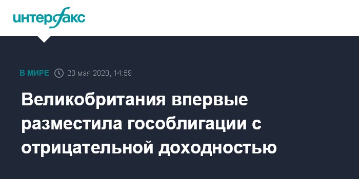 Таким образом, гособлигации Великобритании впервые размещены с отрицательной доходностью. То есть, фактически, инвесторы платят правительству Великобритании, за то, что оно заимствует у них.