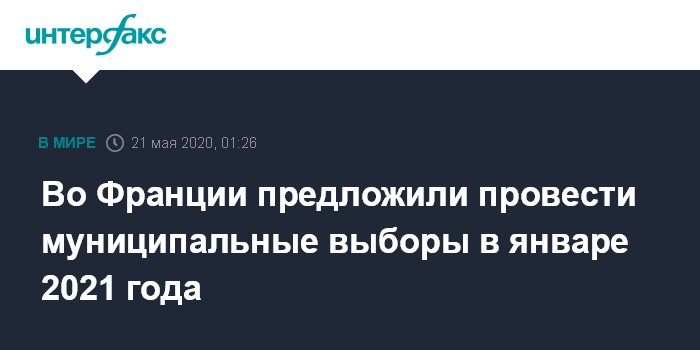 Москва. 21 мая. INTERFAX.RU - Во Франции могут перенести второй тур муниципальных выборов на январь 2021 года, сообщает телеканал France 24.