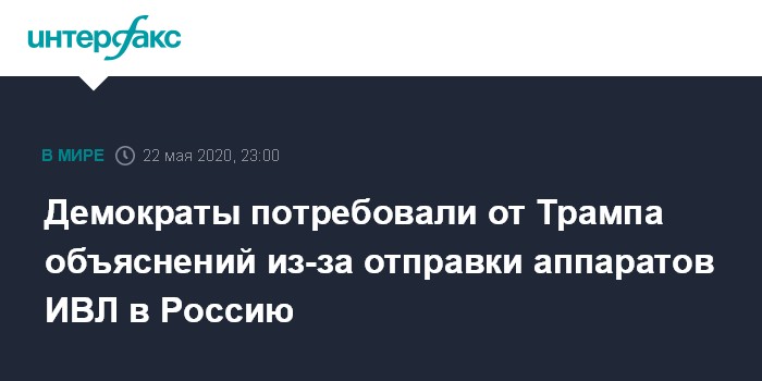 Демократы потребовали от Трампа объяснений из-за отправки аппаратов ИВЛ в Россию