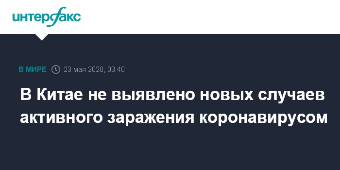 Москва. 23 мая. INTERFAX.RU - В материковом Китае за истекшие сутки не было зарегистрировано новых случаев вызванных коронавирусом заболеваний, однако выявлено 28 бессимптомных больных, сообщил Госкомздрав КНР на своем официальном сайте.