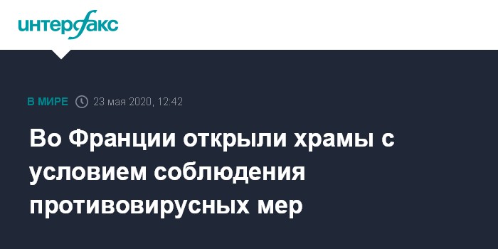 Москва. 23 мая. INTERFAX.RU - Во Франции с субботы разрешено посещение верующими религиозных учреждений, сообщают европейские СМИ.