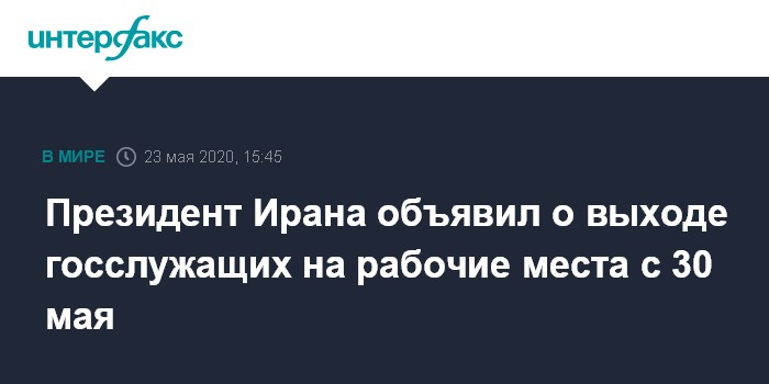 Президент Ирана объявил о выходе госслужащих на рабочие места с 30 мая