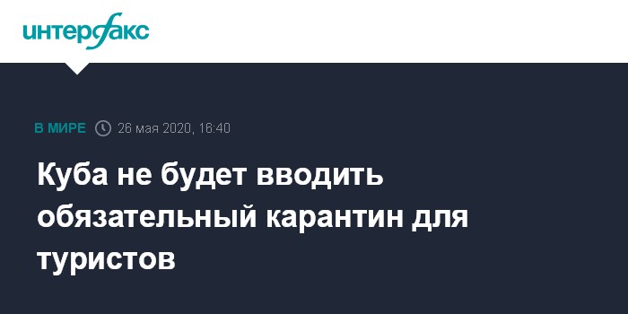 Москва. 26 мая. INTERFAX.RU - Куба не будет вводить обязательный карантин для въезжающих в страну туристов, сообщил советник по туризму посольства республики в РФ Хуан-Карлос Эскалона.