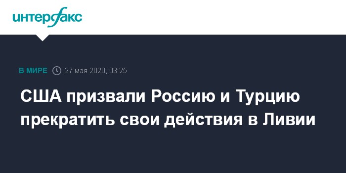 США призвали Россию и Турцию прекратить свои действия в Ливии