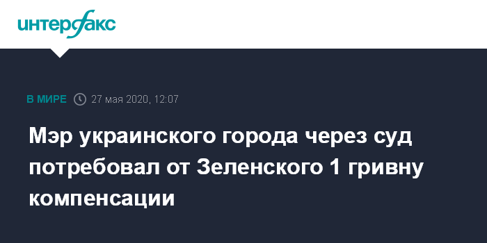 Мэр украинского города через суд потребовал от Зеленского 1 гривну компенсации