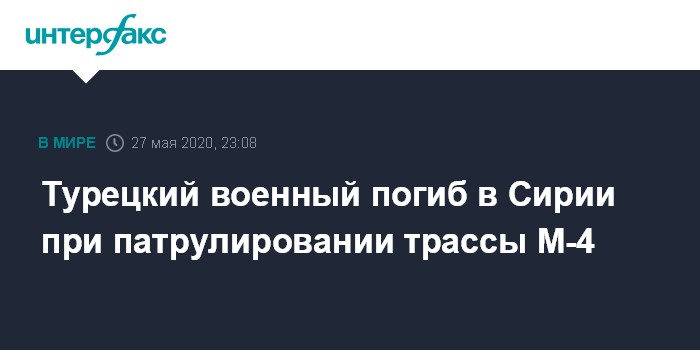Турецкий военный погиб в Сирии при патрулировании трассы М-4