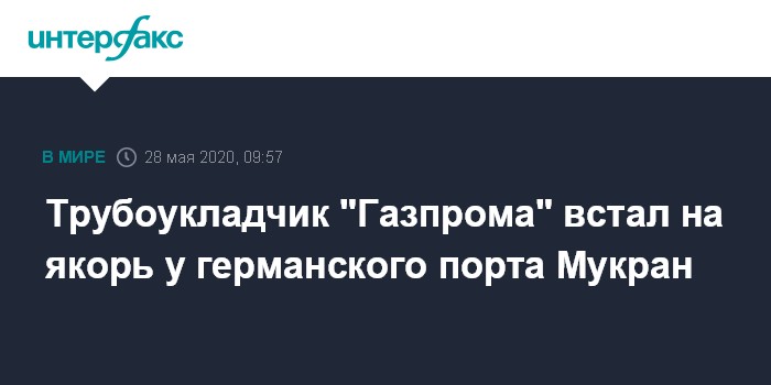 Москва. 28 мая. INTERFAX.RU - Трубоукладчик "Газпрома" "Академик Черский" вышел из германского порта Мукран (там находится логистический терминал проекта строительства "Северного потока 2"), свидетельствуют данные систем контроля передвижения морских судов.