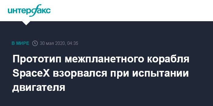 По имеющимся данным, взрыв произошел через две минуты после тестирования двигателя корабля. О пострадавших при испытании не сообщается.