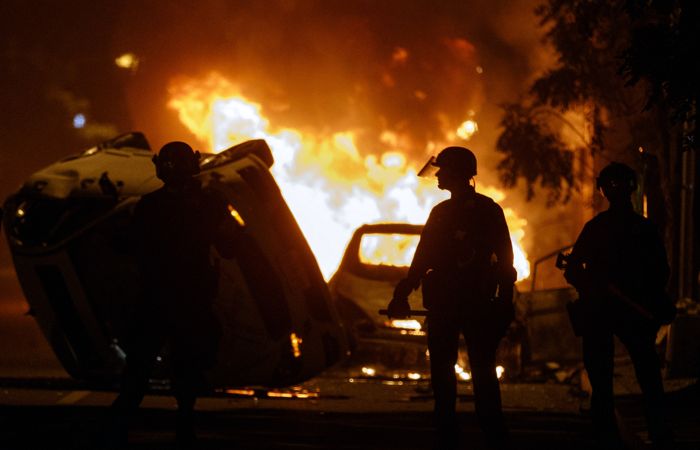 Журналисты и другие пользователи твиттера делятся видеозаписями демонстраций из парка Лафайет, расположенного рядом с Белым домом. На них видны пожары.