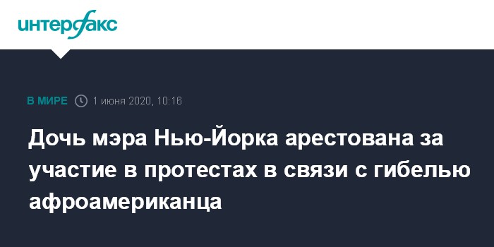 По данным властей, Кьяра де Блазио была арестована за участие в незаконном собрании в субботу, 30 мая. Как утверждается, ее задержали после того, как она и другие протестующие отказались освободить улицу на Манхэттене. The Hill отмечает, что вскоре после ареста дочери мэр города призвал протестующих "отправляться домой".