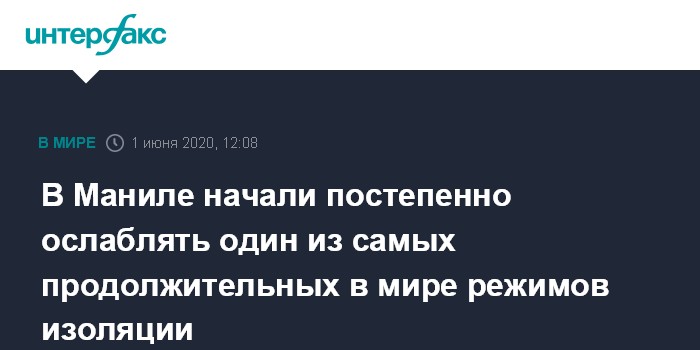 Однако, отмечают СМИ, хотя Манила и такие крупные города, как Себу и Замоанга, поддерживают режим изоляции, большинства провинций Филиппин, особенно в центре страны, уже отменили почти все ограничения.