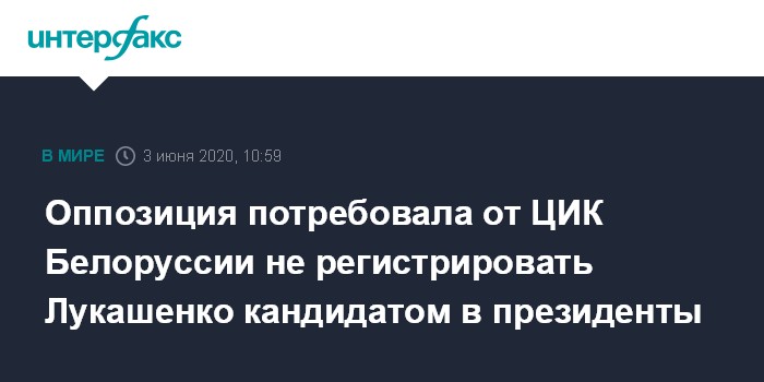 Оппозиция потребовала от ЦИК Белоруссии не регистрировать Лукашенко кандидатом в президенты
