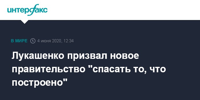 Москва. 4 июня. INTERFAX.RU - Президент Белоруссии Александр Лукашенко призвал новое правительство быстро и активно включиться в работу и спасать "то, что построено".