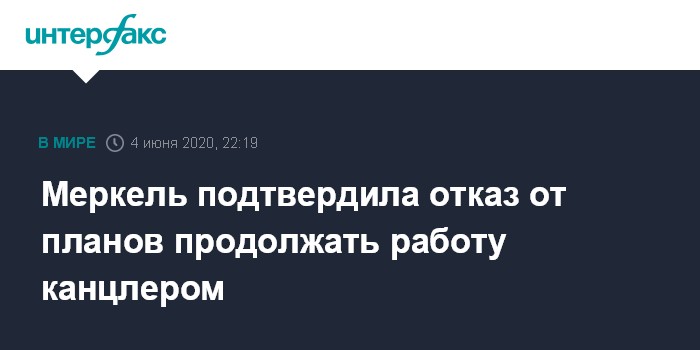 Москва. 4 июня. INTERFAX.RU - Канцлер ФРГ Ангела Меркель заявила в четверг, что точно не будет пытаться остаться на своем посту на пятый срок.