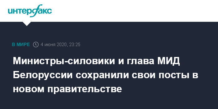 На своих постах остались руководители КГБ, МВД, минобороны и некоторых других ведомств, следует из указа президента Белоруссии Александра Лукашенко, текст которого опубликован на национальном правовом интернет-портале страны.